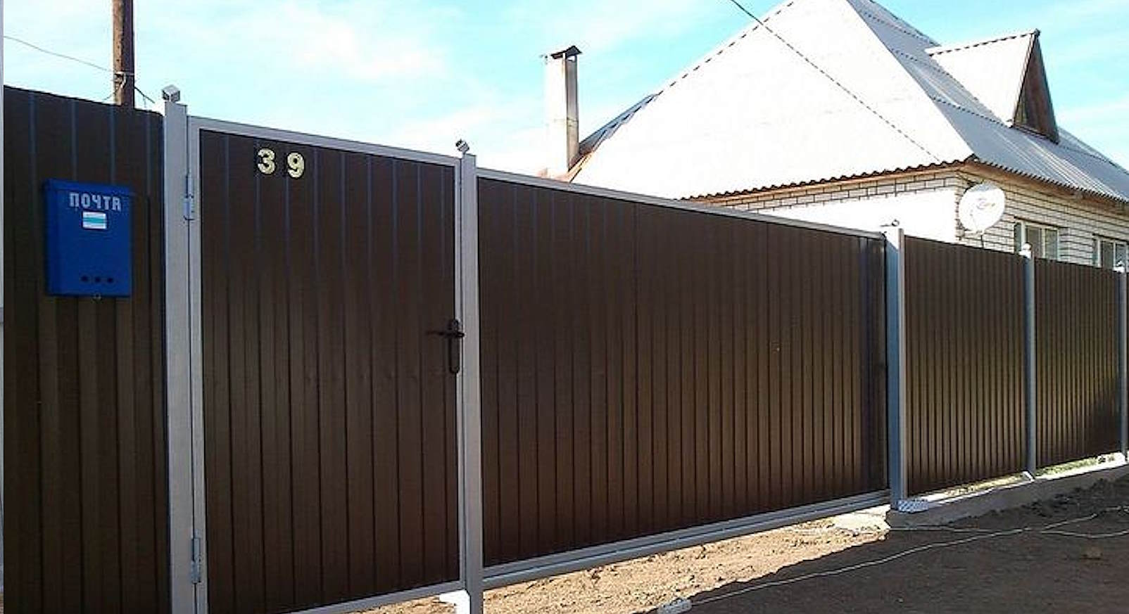 Конструкция забора из профнастила с забивными столбами